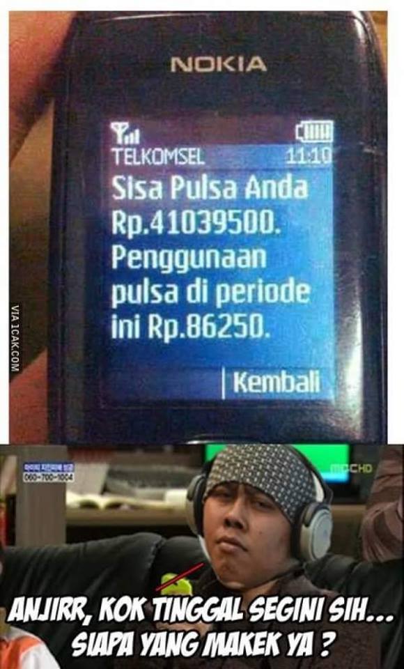 "Pulsa masih 41 juta, anjrirr, kok tinggal segini sih... siapa yang makek ya ?" pantai laaah